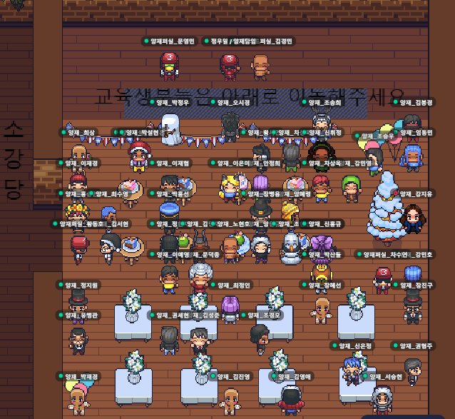 - 팀별로 모여서 친목도모를 위한 간단한 게임 진행 및 개인 소개